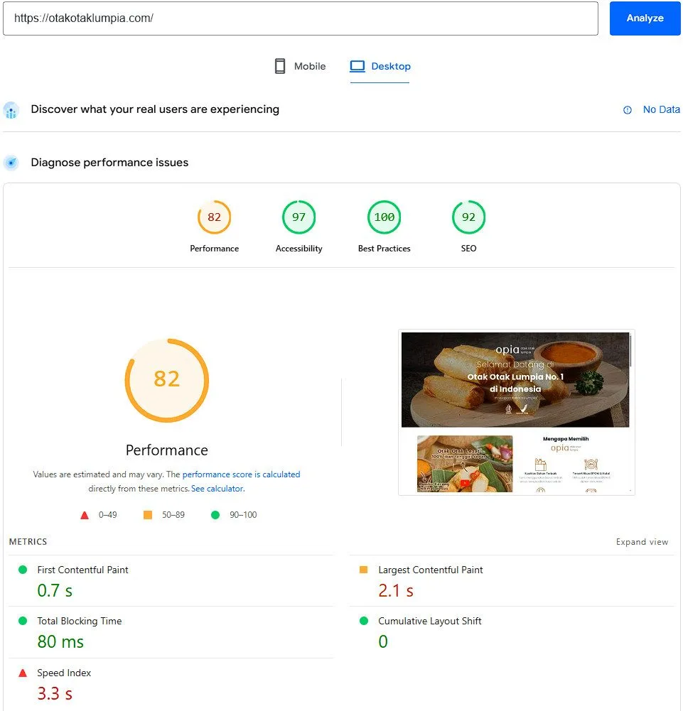 Selain dari tampilan yang jauh lebih profesional dari website sebelumnya, Page Speed Score dari Google juga mendapatkan nilai yang tinggi yaitu 99.