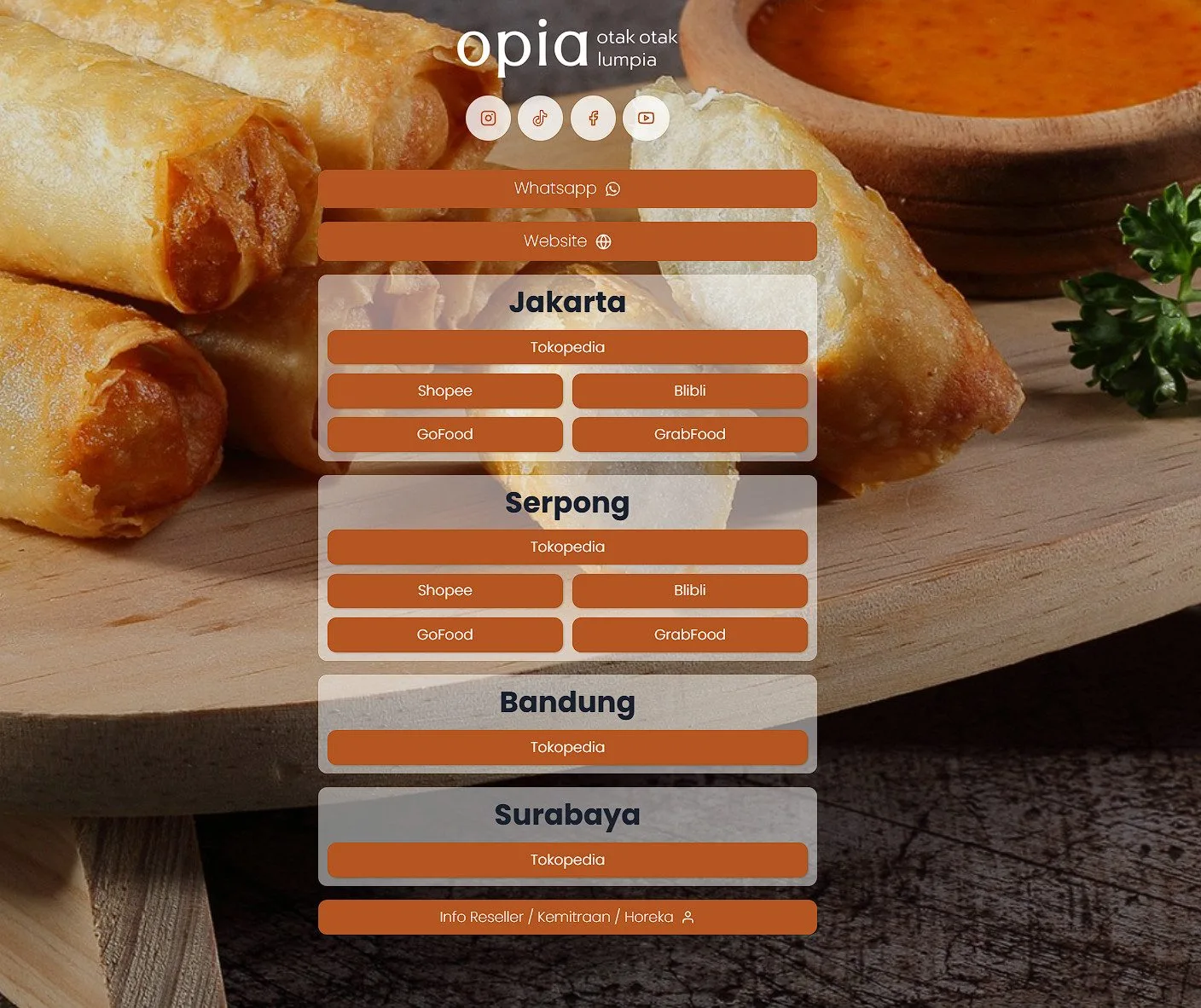 OPIA menjual produk otak-otak lumpia sebagai camilan premium dengan sistem ready stock dan distribusi nasional. Tantangan utama adalah mengarahkan calon pembeli dari berbagai channel ke satu jalur pembelian yang efektif, sekaligus membangun kepercayaan terhadap produk makanan yang dikirim ke seluruh Indonesia.